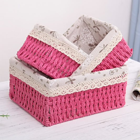 3 Sizes/Set Handmade Straw Storage Baskets Household Items Snacks Fruit Debris Cosmetic Laundry Finishing Storage Basket